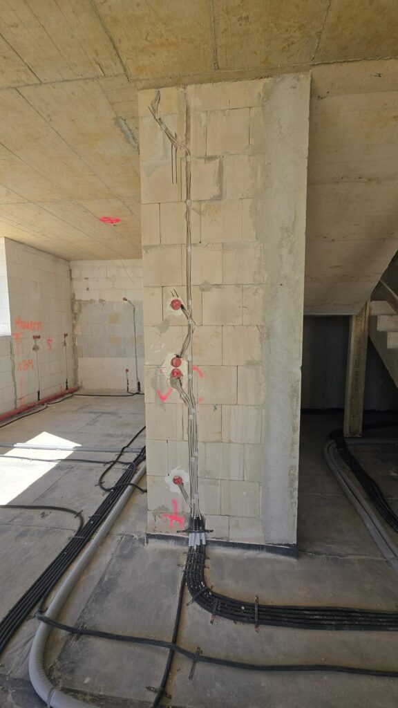 - Neubau-Elektroinstallation: Planung und Installation aller Stromkreise, Steckdosen, Beleuchtung, Netzwerktechnik und Smart-Home-Komponenten für Neubauten.